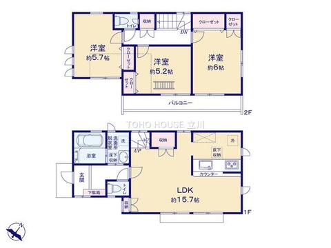 都市ガス/東京電力/公営水道/下水排水/インターホンTV/フローリング/システムキッチン/シャンプードレッサー/バルコニー/対面キッチン/追焚給湯/温水洗浄便座/浴室換気乾燥機/床下収納/クローゼット/駐車場/グルニエ/食器洗浄乾燥機/トイレ2ヶ所/浴室暖房/全居室フローリング/リビング階段/LDK15畳以上/浴室に窓/全居室収納