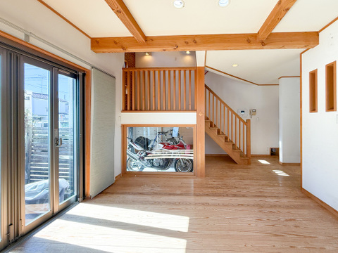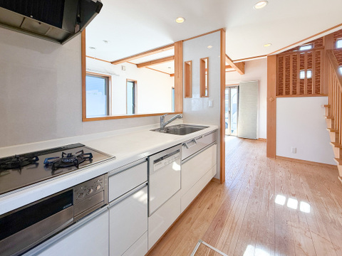 都市ガス/東京電力/公営水道/下水排水/フローリング/対面キッチン/床下収納/ウォークインクローゼット/駐車場2台/トイレ2ヶ所/リビング階段/LDK18畳以上/全室2面採光