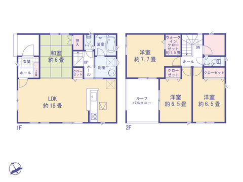 太陽光発電システム付 ゆとりある18帖のLDKに対面式キッチン 心落ち着く和室有 主寝室には収納力を備えたWICが魅力 広々ルーフバルコニーは使い方自由の開放的な空間です 駐車場4台分(車種による)