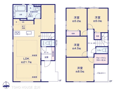 都市ガス/公営水道/下水排水/給湯/インターホンTV/フローリング/システムキッチン/バルコニー/対面キッチン/温水洗浄便座/浴室換気乾燥機/床下収納/床暖房/ウォークインクローゼット/24時間換気システム/食器洗浄乾燥機/フラット35/浄水器/トイレ2ヶ所/火災警報器(報知機)/フラット35適合/全居室フローリング/LDK15畳以上